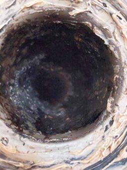 トイレを外した排水管の奥には黒いスライム状の塊がビッシリ!