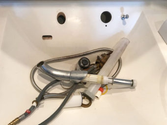 ナショナルはパナソニックに 新しく変わっているので、パナソニック製の洗面シャワー水栓に交換して作業は完了です(^^)/