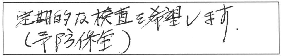 親切に対応していただき、部品の説明等していただきました。又、何か起こった時は御願いしたいと思います。