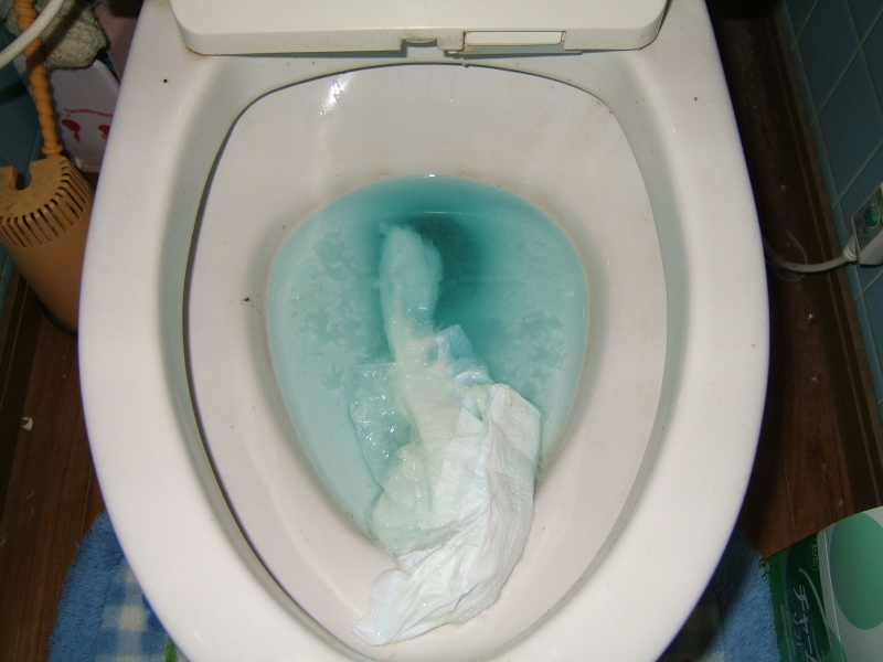 23:52分「トイレにオムツを流してしまったかもしれない。朝トイレに行きたいので何とかしてほしい。」とご依頼を頂きました。トイレの詰りはほとんどがトイレットペーパーや汚物ですがオムツの詰りも割りと良くあるご依頼です。