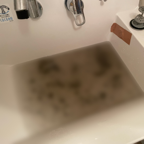 現地に到着すると、洗面ボウル内に水が溜まっている状態で、まったく排水されていませんでした。