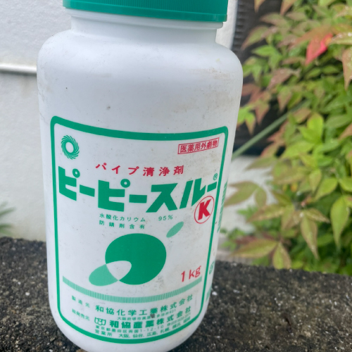 さらに、パイプ内部の汚れをしっかり除去するために、ピーピースルーという業務用の強力パイプクリーナーも併用。