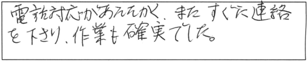 電話対応があたたかく、また、すぐに連絡を下さり、作業も確実でした。 |