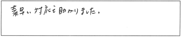 祭日にもかかわらず、朝早く対応していただき、ありがたかったです。 |