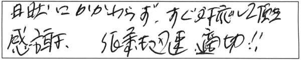 日曜にかかわらず、すぐ対応して頂き感謝。