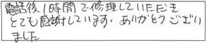 HPに問い合わせをしたら10分もしない内に電話がきて、ビックリしました。